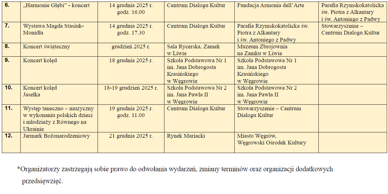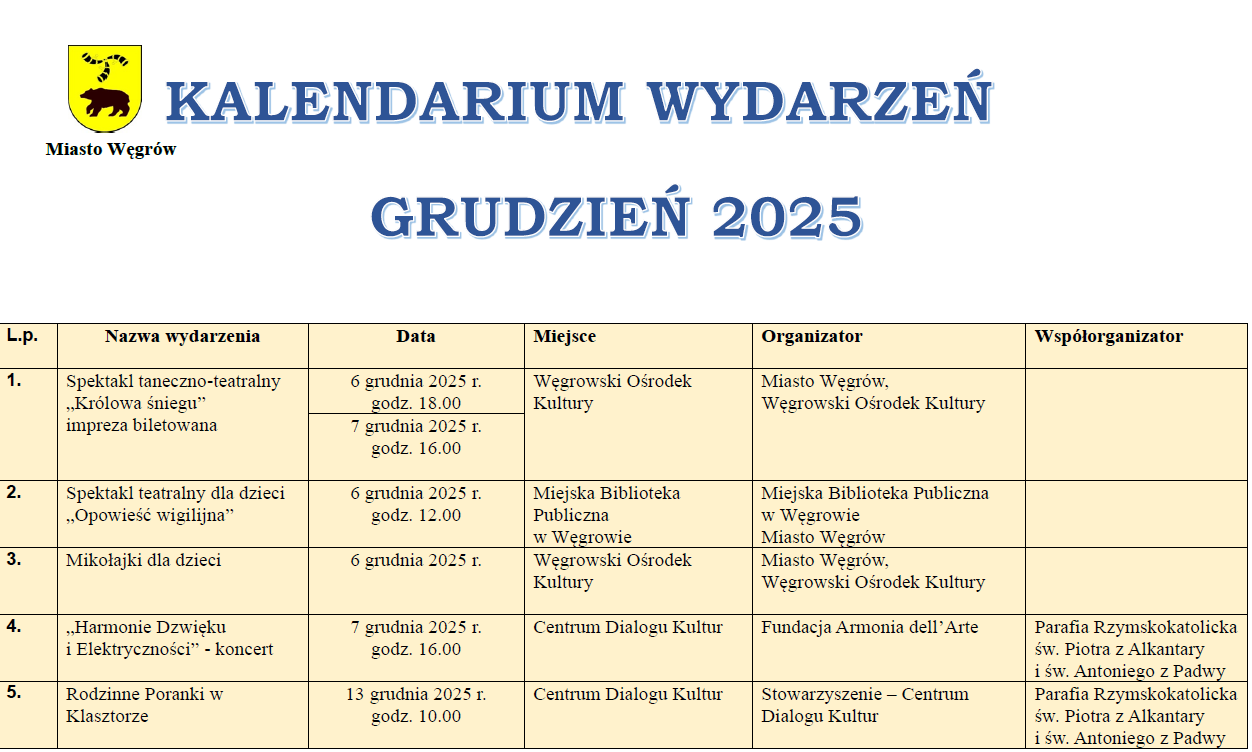 Kalendarium wydarzeń grudzień 2025.Archiwum